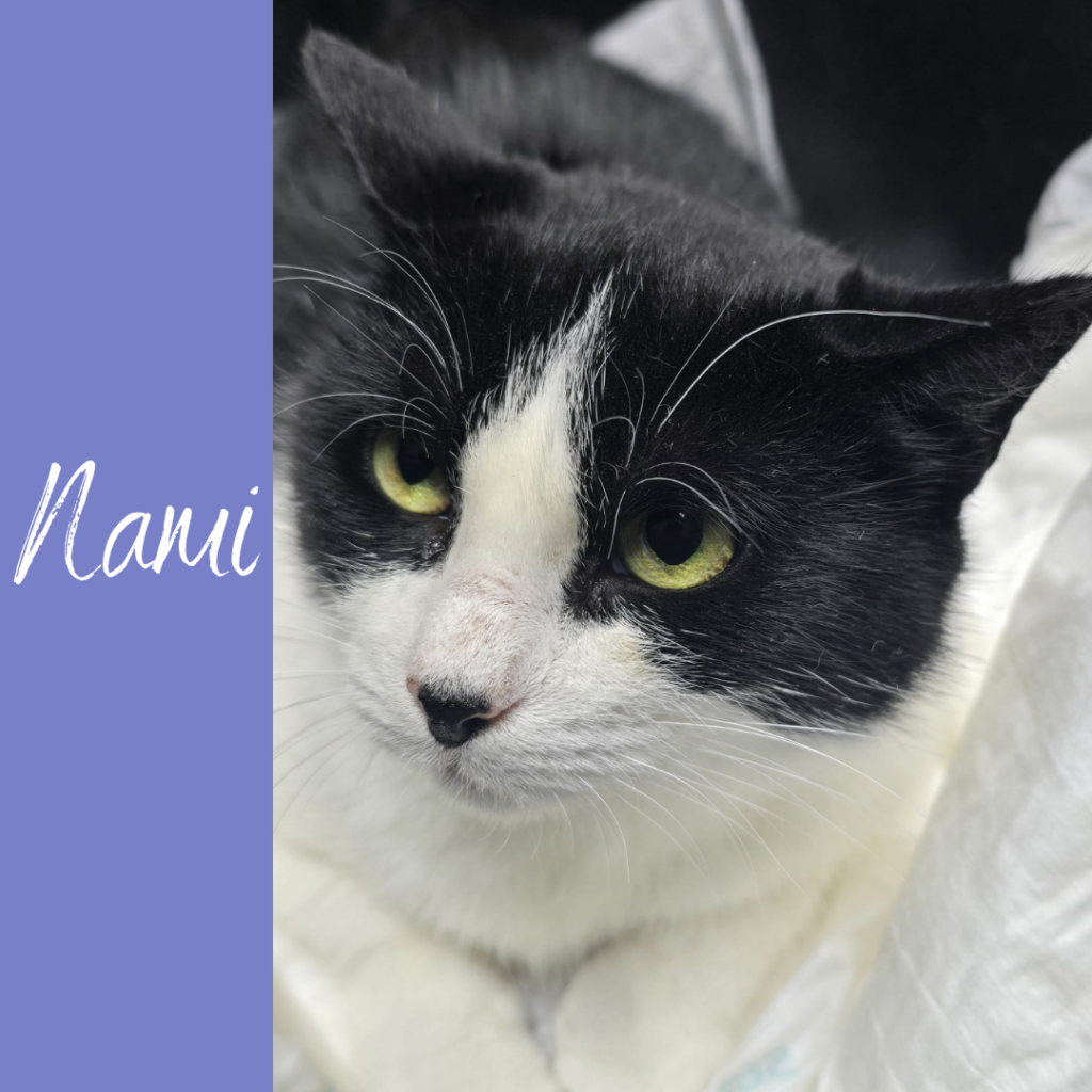 Nami ist eine wunderschöne, etwa 1,5 Jahre alte Katze, die ein neues Zuhause verdient. Sie wurde ursprünglich an einem Baumarkt geduldet, bis sie und ihre Kitten dort nicht mehr bleiben konnte.